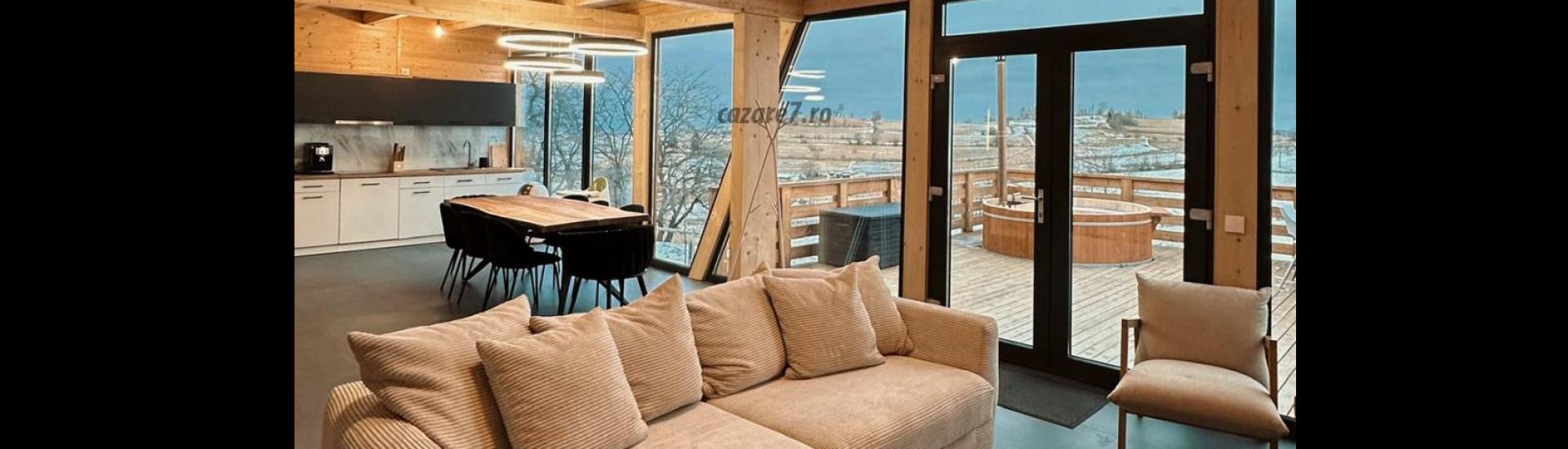 Cabana dispune de 4 dormitoare matrimoniale, bucatarie open space dotata cu vesela, frigider, masina de spalat vase, plita electrica, cuptor, aparat de cafea. Baia este una moderna si spatioasa dotata cu dus,wc si două lavoare.